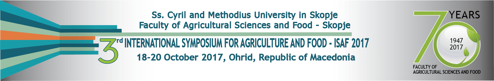 For the occasion of its 70 years anniversary, the Faculty of Agricultural Sciences and Food – Skopje organizes a 3rd International Symposium for Agriculture and Food (ISAF 2017), offering possibility for presenting novel and fundamental advances in the field of sustainable agriculture and food production. ISAF 2017 will bring together and foster the communication among leading researchers, engineers and practitioners with an aim to share their scientific ideas and experience with all actors in the agricultural sector.